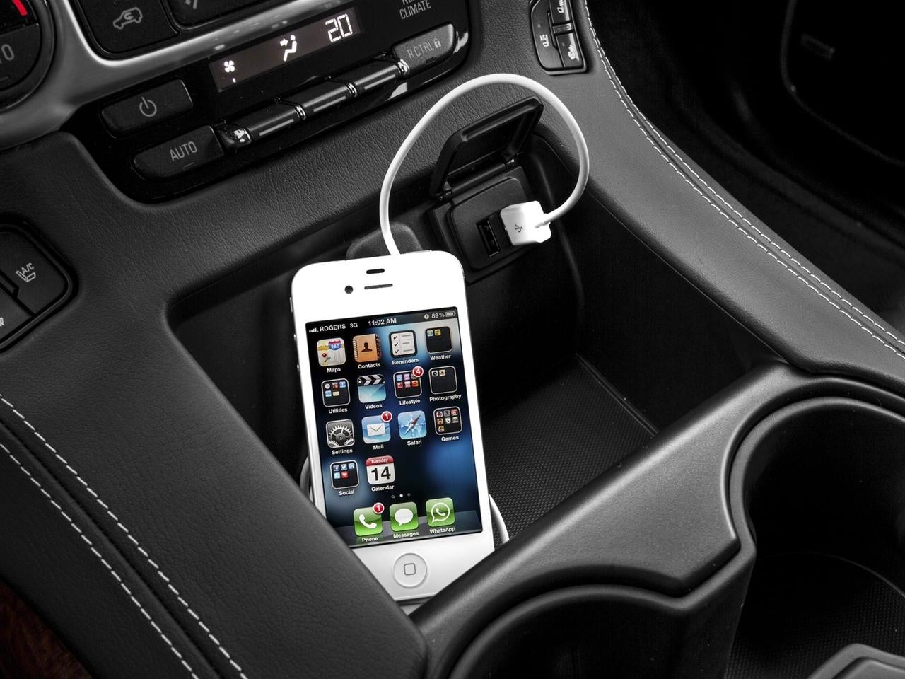 - Audio system, 8" Diagonal Color Touch Screen with IntelliLink AM/FM/SiriusXM with USB ports and auxiliary jack, 8" Diagonal Color Touch Screen with USB ports and auxiliary jack. Includes new text message alert sand Siri Eyes Free functionality through voice command, Bluetooth® streaming audio for music and most phones, hands-free smartphone integration, Pandora Internet radio and voice-activated technology for radio and phone. Has an articulating screen with hidden storage and includes 5 USB ports and 1 auxiliary jack (See "gmtotalconnect.com" for phone compatibility information.)