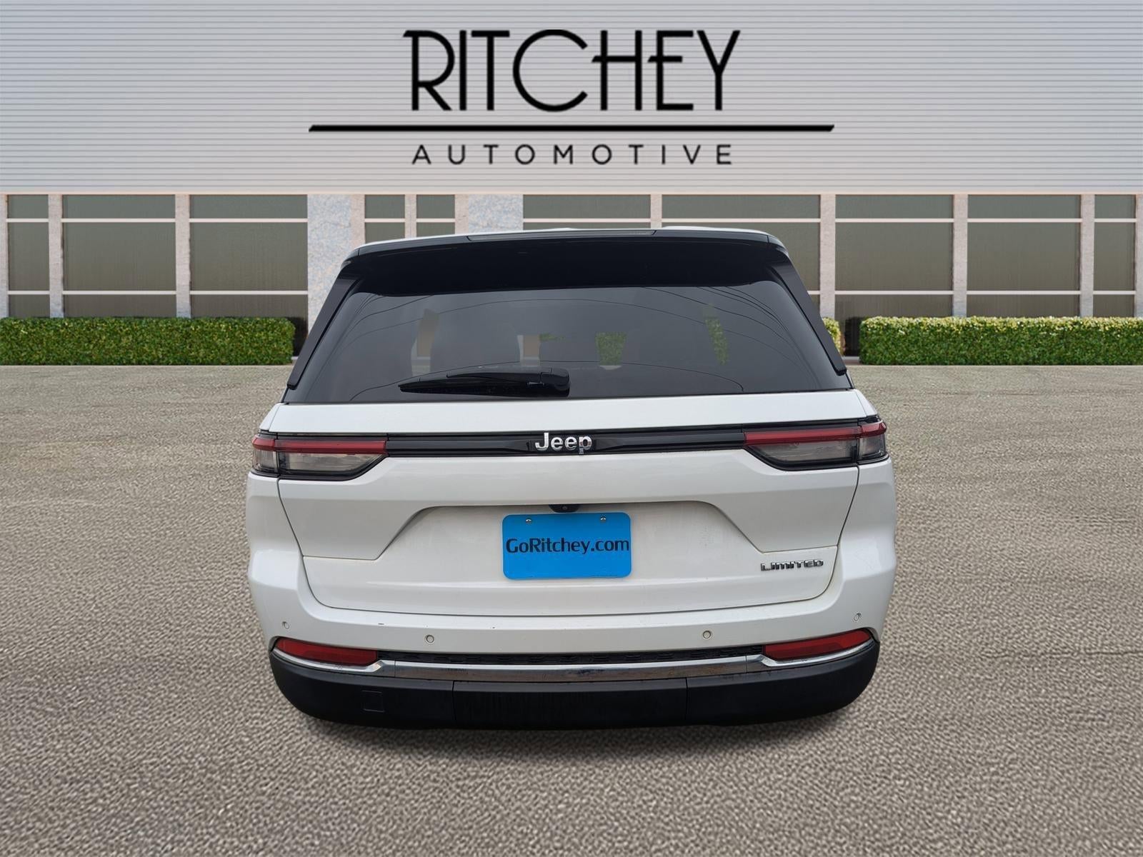 Ritchey Automotive is proud to present you with another True Market Priced Pre-Owned Vehicle. This 2023 Jeep Grand Cherokee Limited is loaded with the following Factory Options:Quick Order Package 23E, 3.45 Rear Axle Ratio, 4-Wheel Disc Brakes, 6 Speakers, ABS brakes, Active Noise Control System, Air Conditioning, Alloy wheels, AM/FM radio: SiriusXM with 360L, Anti-whiplash front head restraints, Audio memory, Auto High-beam Headlights, Automatic temperature control, Brake assist, Bumpers: body-color, Capri Leatherette Seats, Compass, Delay-off headlights, Driver door bin, Driver vanity mirror, Dual front impact airbags, Dual front side impact airbags, Dual-Pane Panoramic Sunroof, Electronic Stability Control, Emergency communication system, Four wheel independent suspension, Front anti-roll bar, Front Bucket Seats, Front Center Armrest w/Storage, Front dual zone A/C, Front fog lights, Front License Plate Bracket, Front reading lights, Fully automatic headlights, Garage door transmitter, Heated door mirrors, Heated front seats, Heated rear seats, Heated steering wheel, Illuminated entry, Knee airbag, Low tire pressure warning, Memory seat, Molded In Color Black/Gloss Black Roof Rails, Navigation System, Normal Duty Suspension, Occupant sensing airbag, Outside temperature display, Overhead airbag, Overhead console, Panic alarm, ParkView Rear Back-Up Camera, Passenger door bin, Passenger vanity mirror, Power door mirrors, Power driver seat, Power Liftgate, Power passenger seat, Power steering, Power windows, Radio data system, Radio: Uconnect 5 Nav w/10.1" Display, Rear anti-roll bar, Rear reading lights, Rear window defroster, Rear window wiper, Remote keyless entry, Security system, Speed control, Speed-Sensitive Wipers, Split folding rear seat, Spoiler, Steering wheel mounted audio controls, Tachometer, Telescoping steering wheel, Tilt steering wheel, Traction control, Trip computer, Turn signal indicator mirrors, Variably intermittent wipers, Voltmeter, and Wheels: 18" x 8" Fully Painted Aluminum.